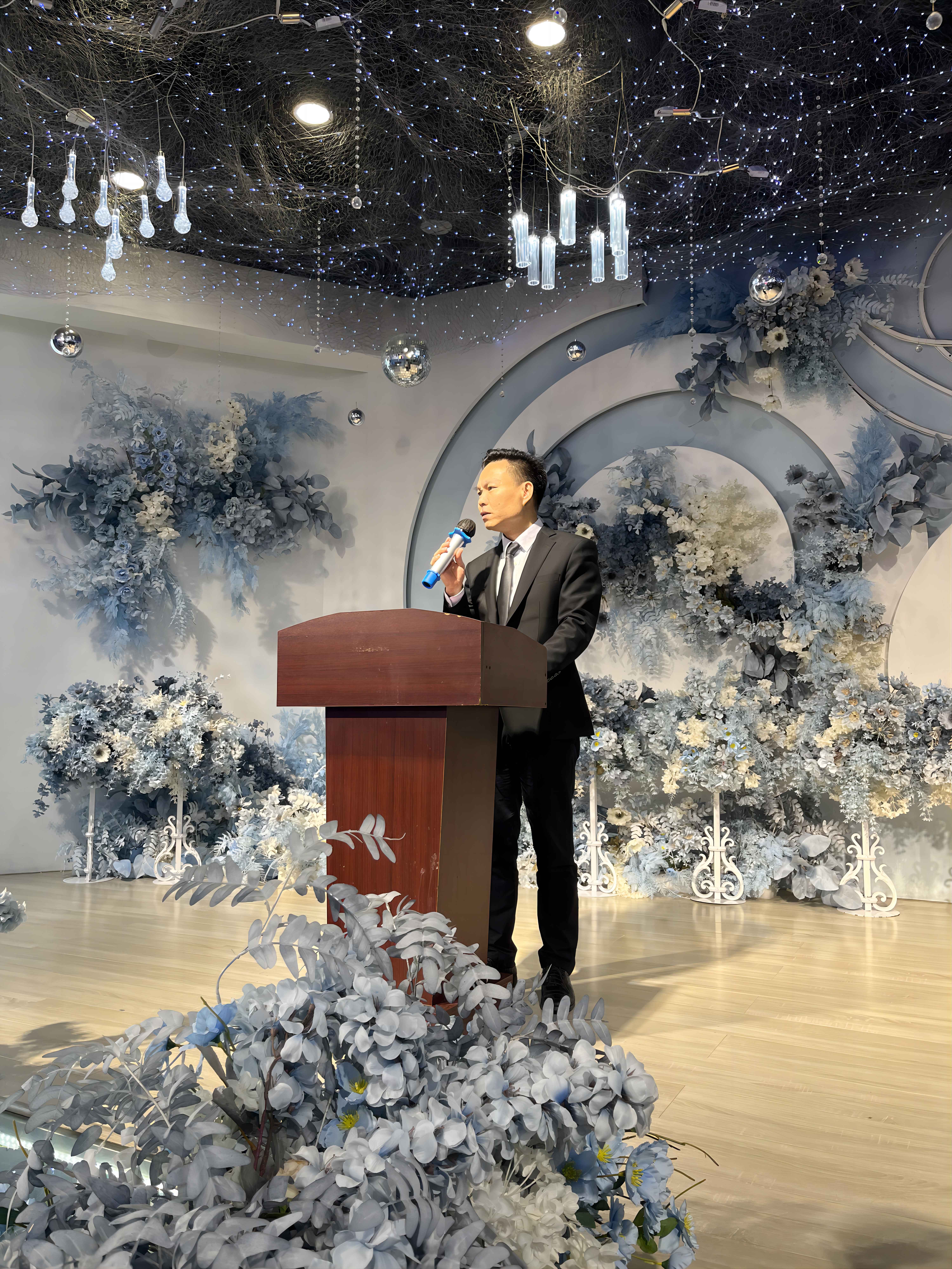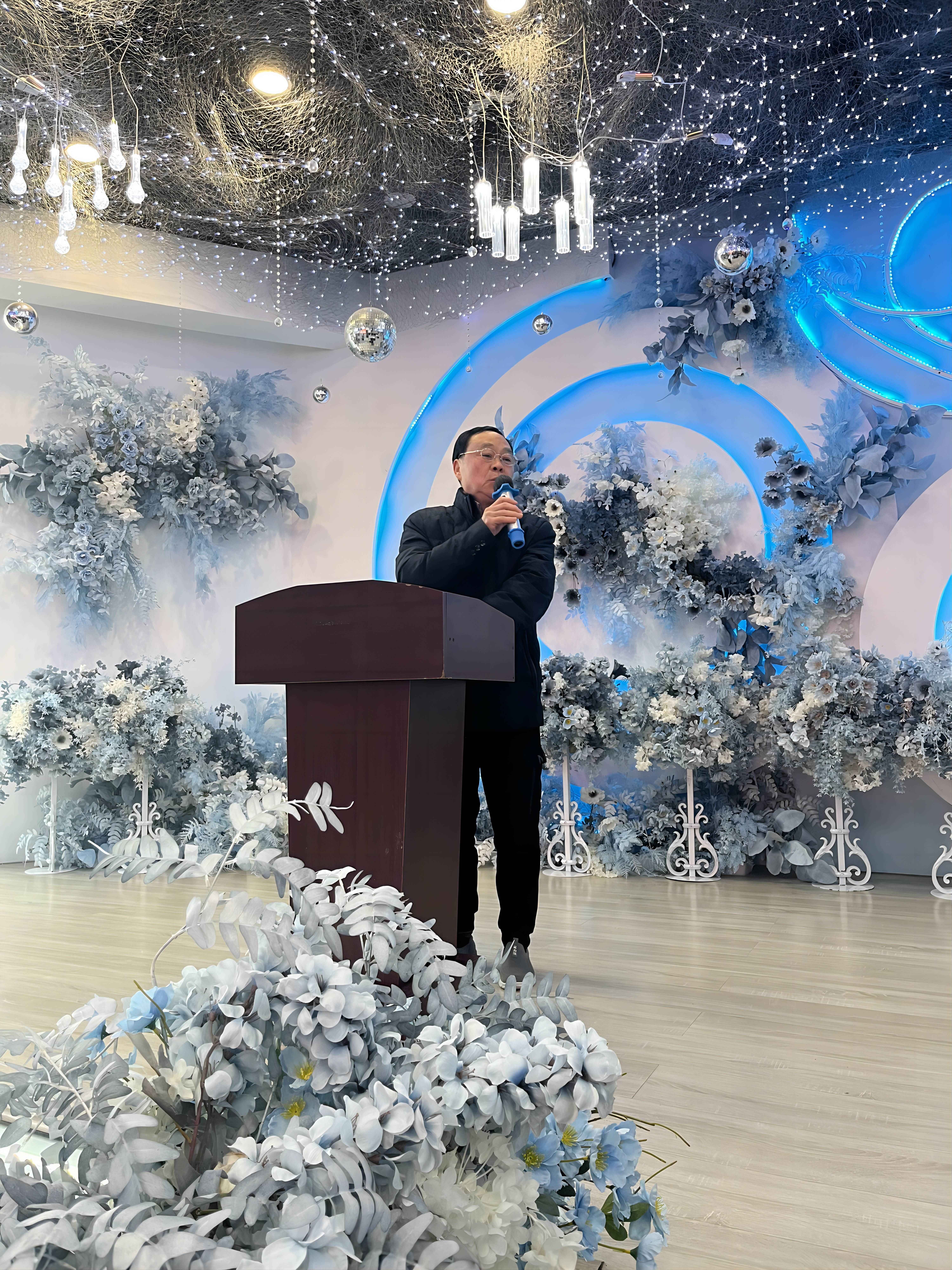 年会在公司董事长符乃良先生精彩而真情的新年致辞中拉开了帷幕。符总首先对公司 2022 年度的工作成绩进行了总结,也表达了 2023 年对公司发展的期许,同时为全体同仁送上诚挚的新年祝福。我们还有幸邀请到长期关心和支持中钢联的特邀嘉宾参加了我们本次年会,赵挺松书记为中钢联致辞,他代表江汉区科技创新企业商会、江汉区高新技术企业协会向湖北中钢联公司全体员工致以新春的祝福。领导们的讲话饱含深情,催人奋进,相信 2023 年公司必将再上一个新的台阶。