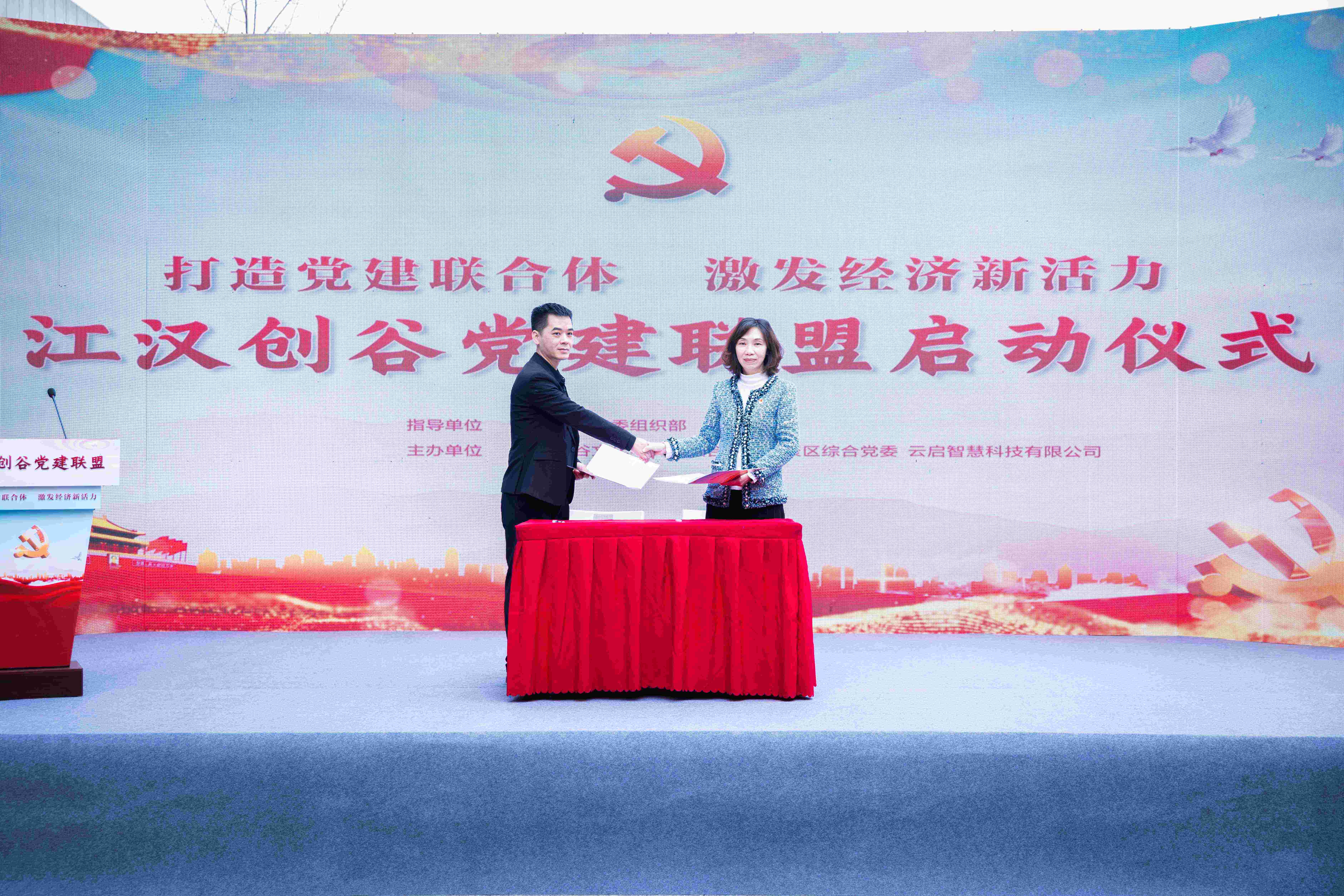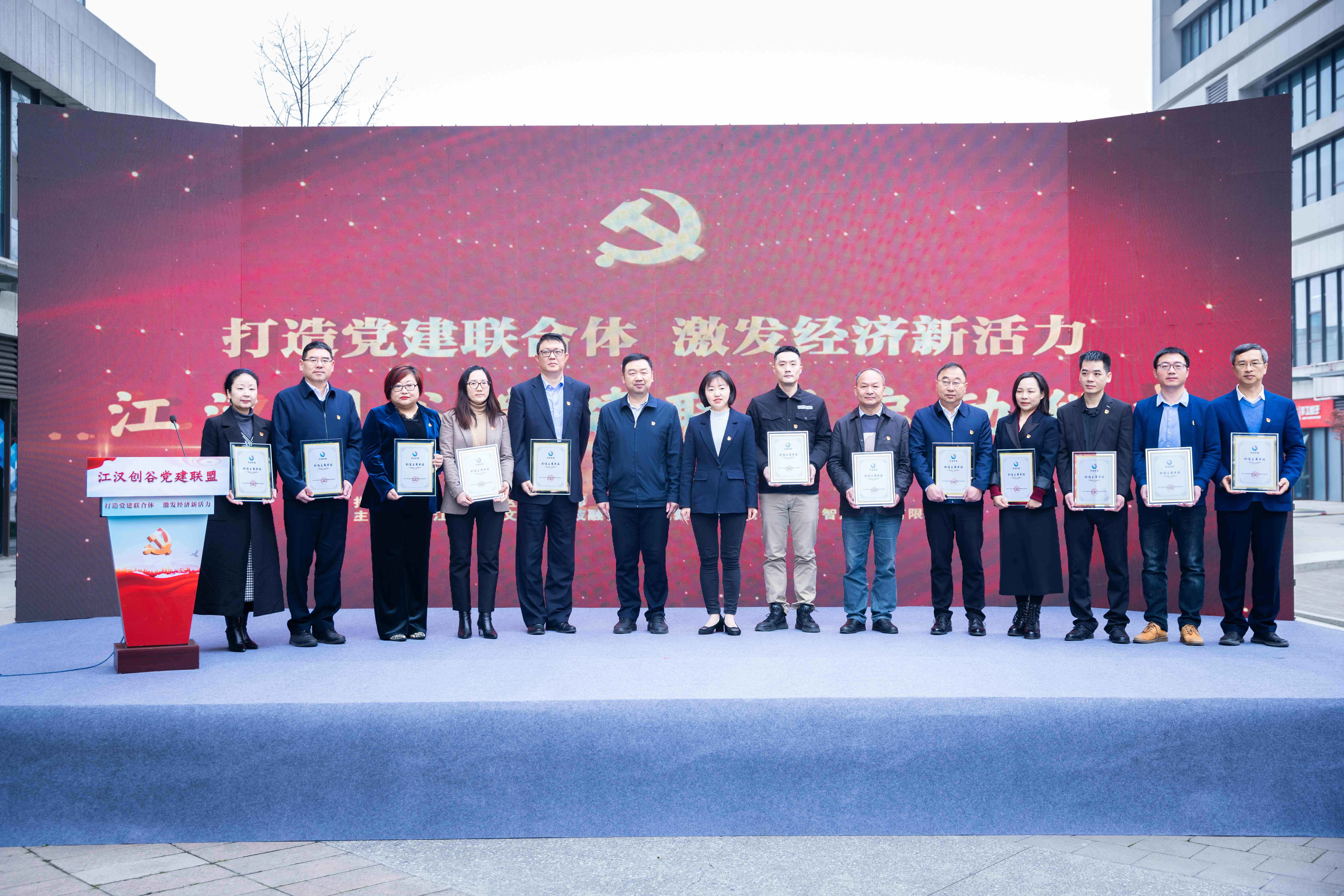 深入贯彻落实新时代党的建设总要求和党的组织路线,切实夯实 基层党建基础,解决企业困难,优化营商环境,促进经济发展,江汉经济开发区工委决定成立党建联盟,于 2023 年 3 月 29 日上午举办“江汉经济开发区党建联盟启动仪式”活动,湖北中钢联冶金工程有限公司党支部代表金巍同志参加了本次活动,并当选 12 家党建联盟轮值主席之一,江汉区委组织部胡金利部长、开发区工委杨栋书记给 12 家党建联盟轮值主席颁发了证书并合照。