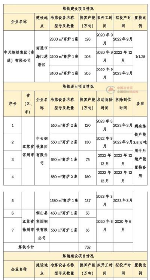从《公示》中获悉,中天钢铁拟在南通市海门港新区新建3座炼铁高炉,换算产能606万吨,新建3座炼钢转炉,换算产能585万吨。拟开工时间为2020年9月,置换方案具体内容整理如下: